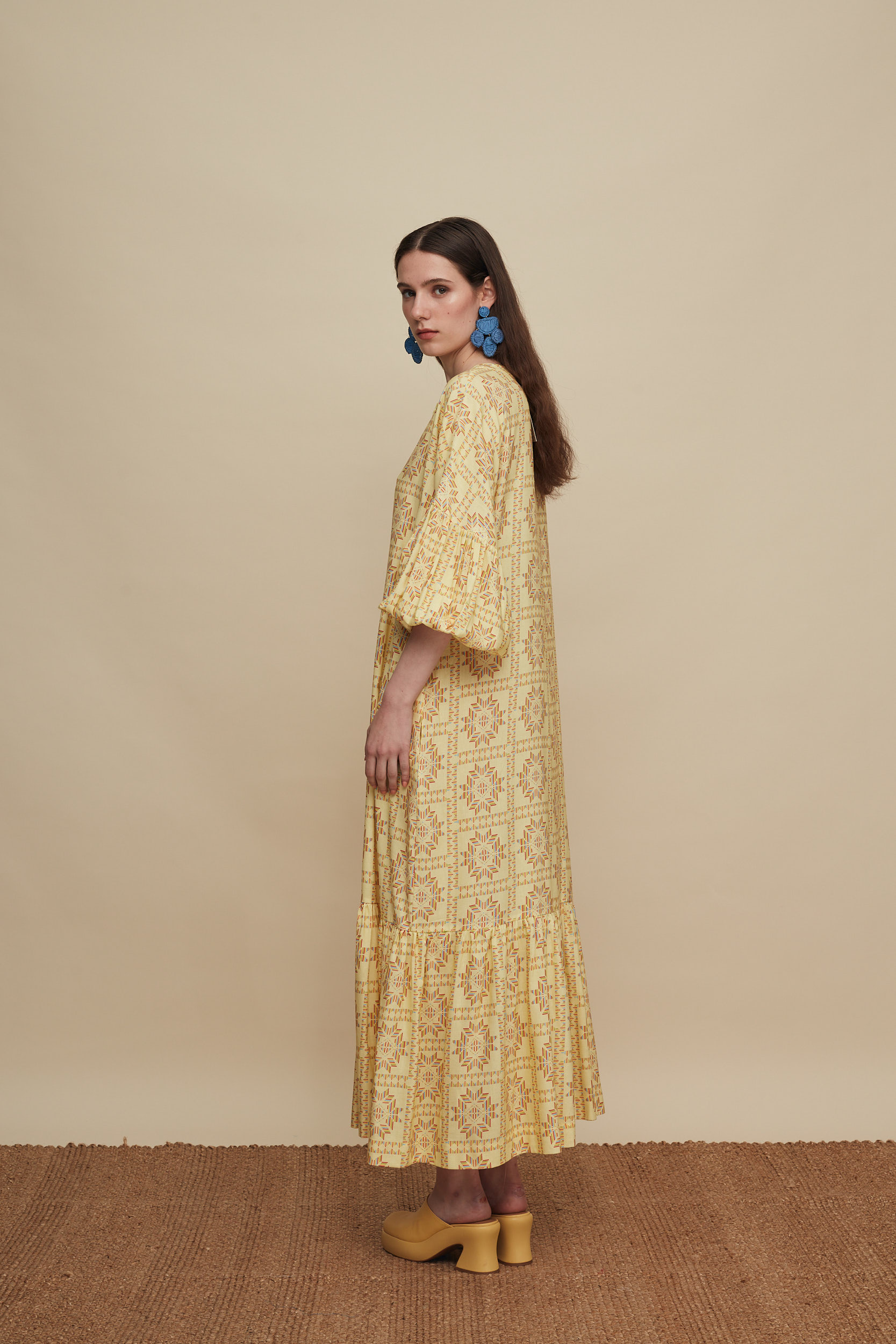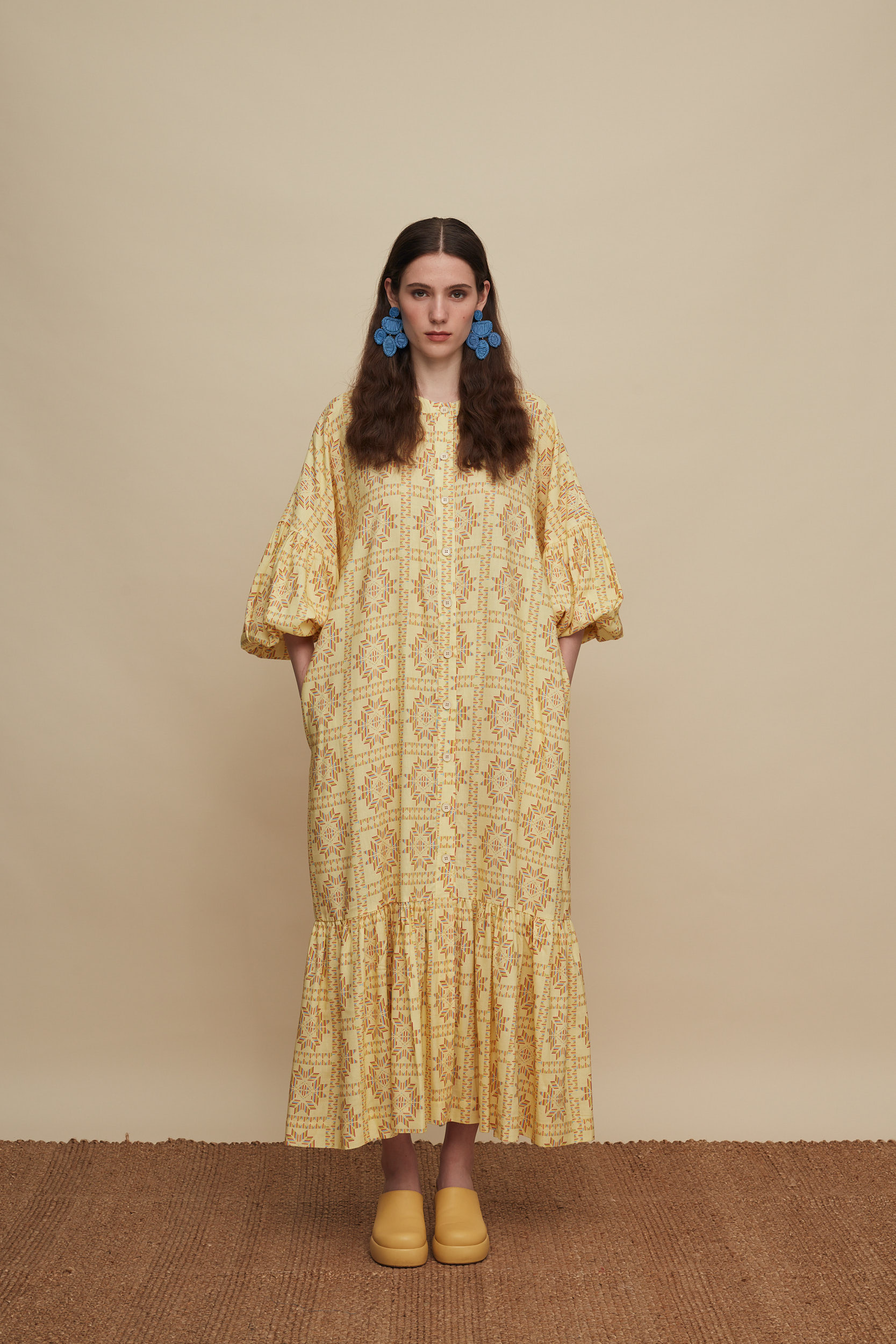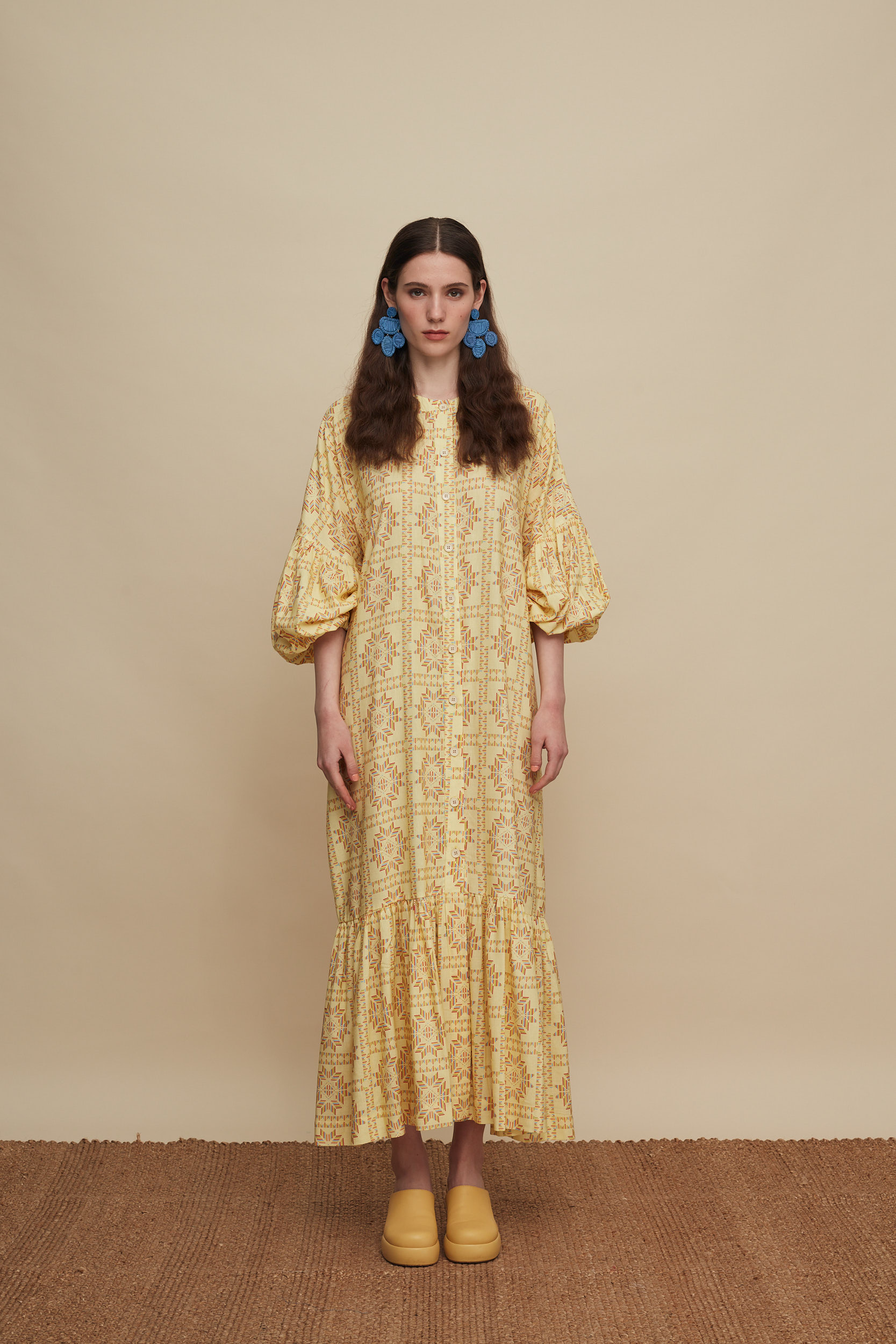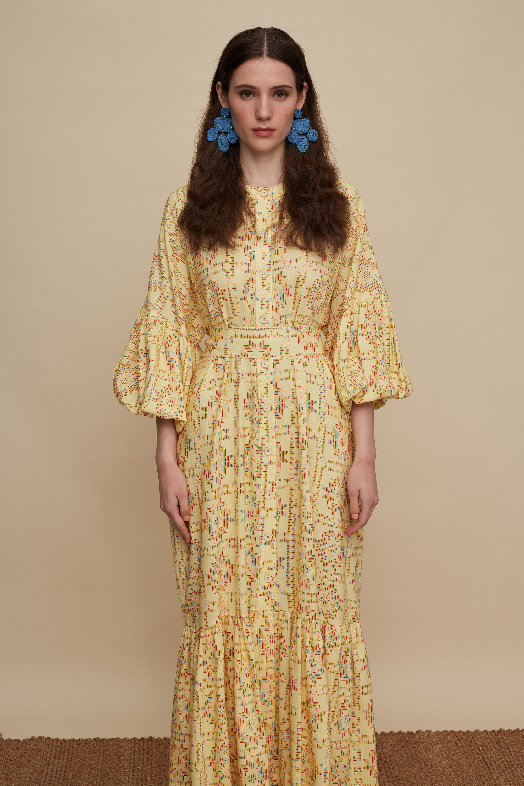 • Ankle Length Dress in A line with voluminous sleeves