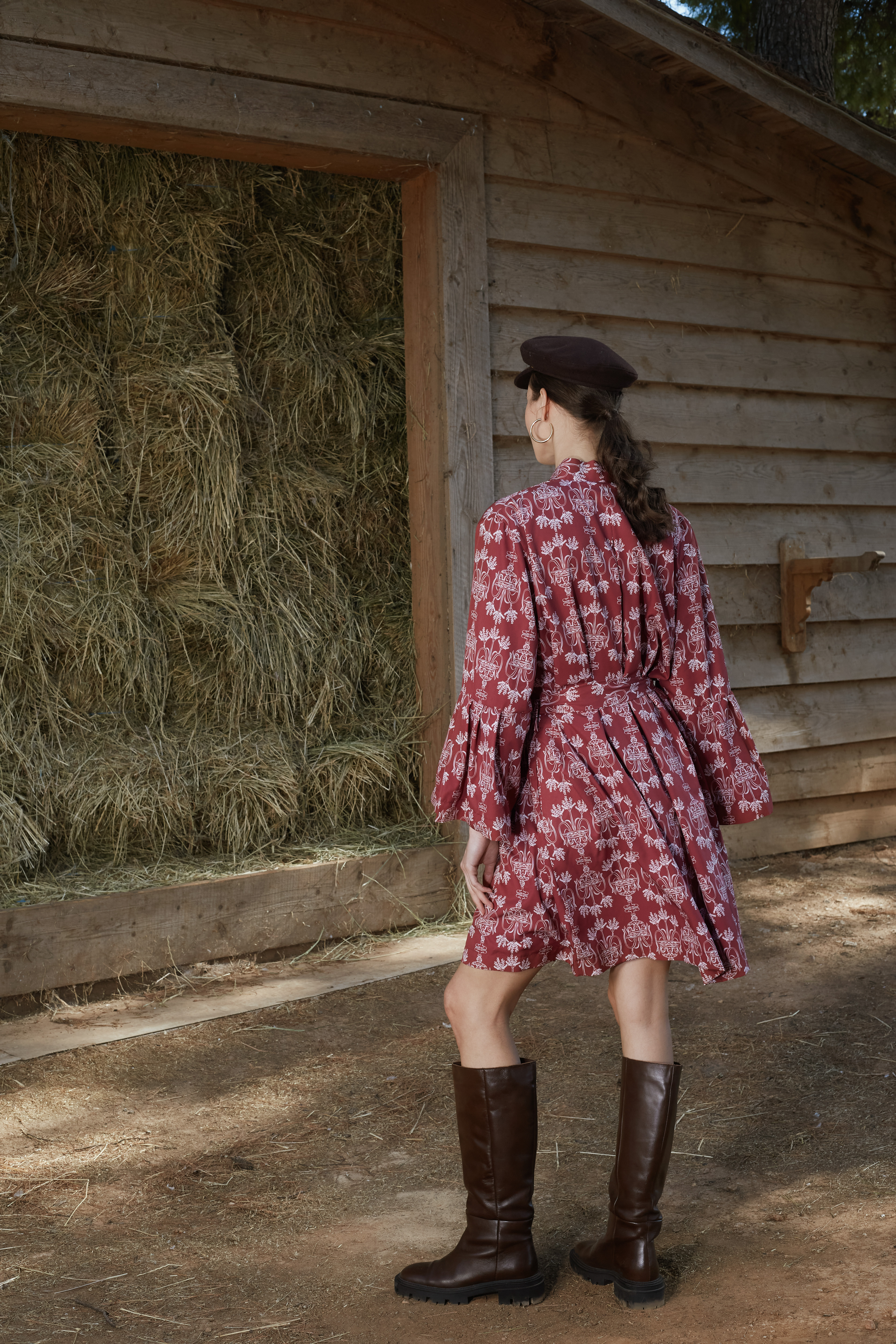 ARETOUSA KIMONO/DRESS (Bordeaux Vase Print)